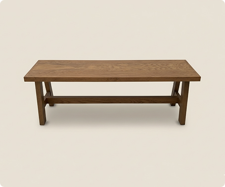 Mesa auxiliar rectangular de estilo rústico y robusto, ideal para exteriores o como mueble de apoyo interior. Está fabricado enteramente en madera de tono medio a oscuro , con un acabado cálido y visible que sugiere solidez. La cubierta superior es gruesa y plana , con esquinas ligeramente redondeadas, proporcionando una superficie de apoyo amplia.
